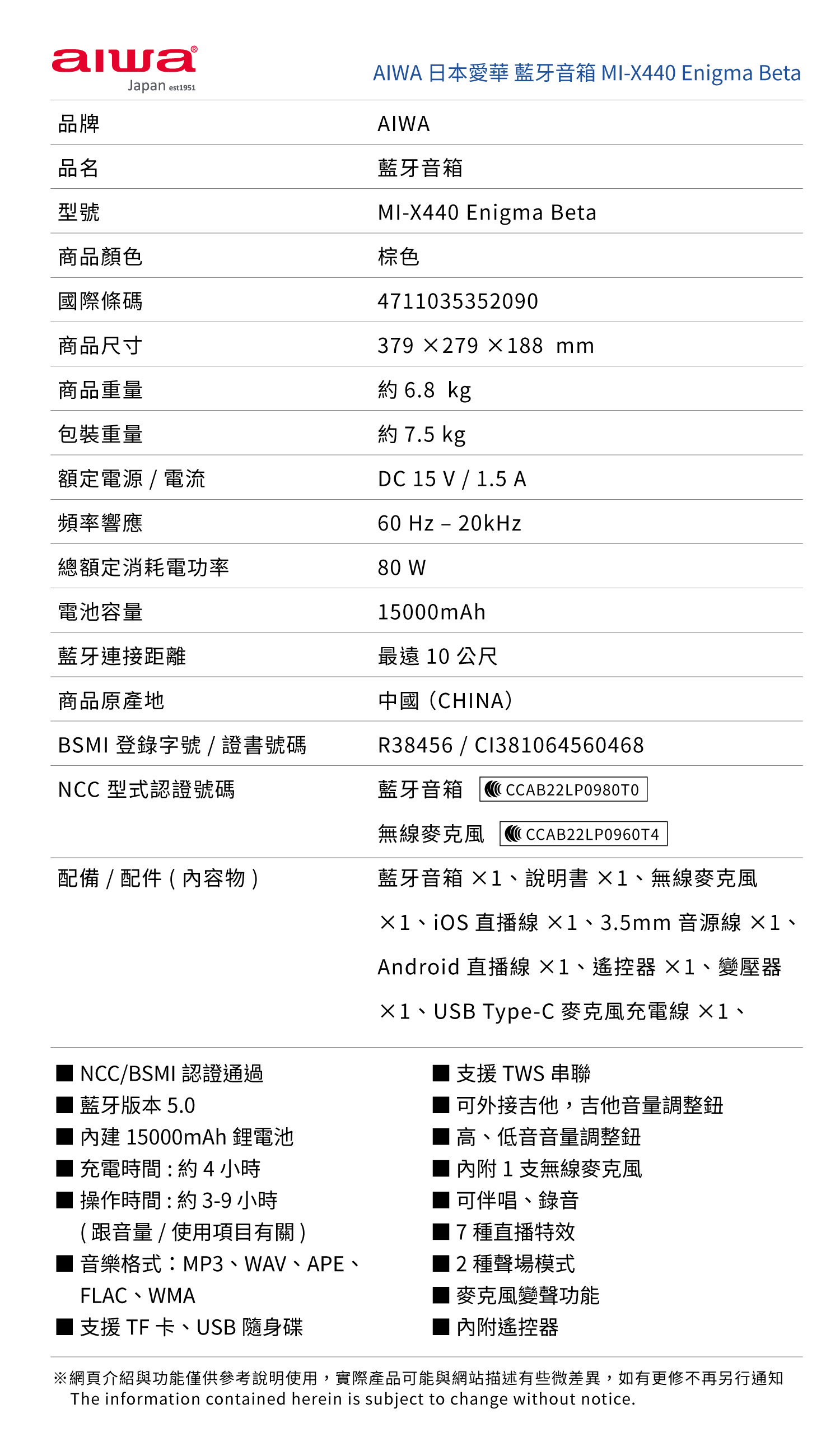 AIWA 愛華 藍牙喇叭 MI-X440 Enigma Beta