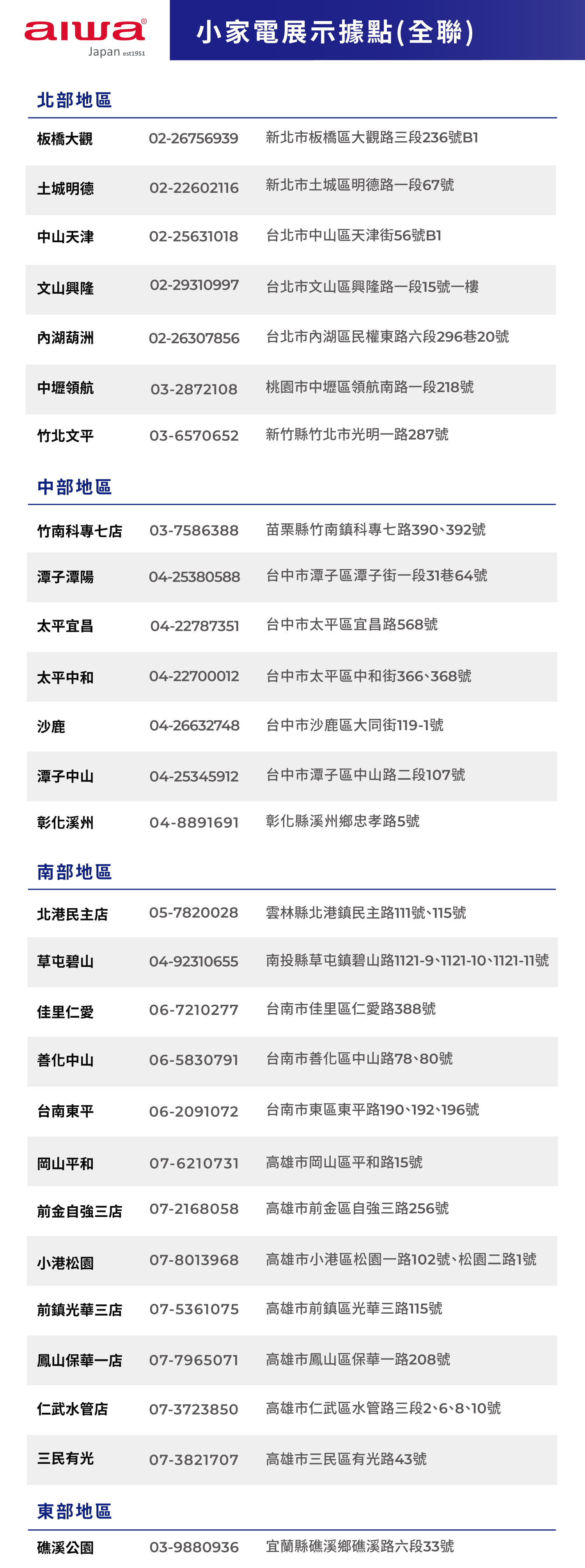 有關 AIWA 台灣愛華 的任何問題,歡迎連絡我們。