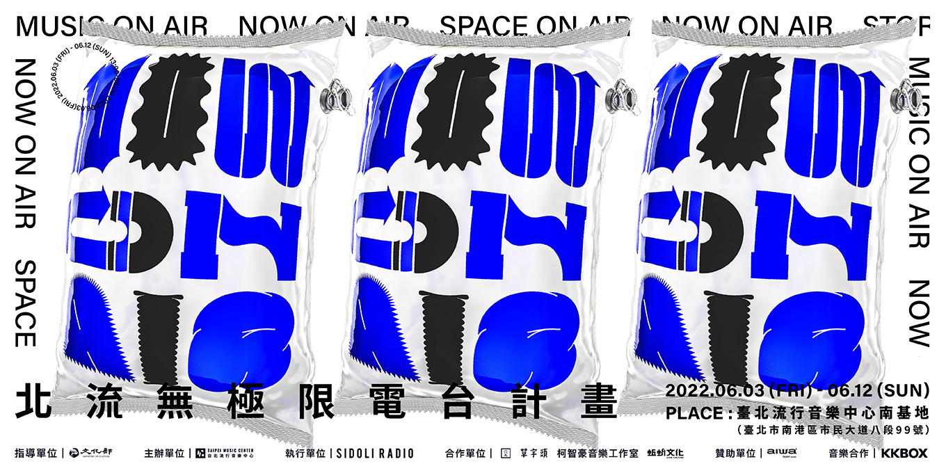 《北流無極限電台計畫 NOW ON AIR》聲音展覽計畫,將臺北流行音樂中心南基地打造成可實體沉浸感受的廣播實驗放送室,結合音樂、電台廣播、藝術裝置與生活產業的跨界融合,成為十個不同頻道主題的「北流大電台」。