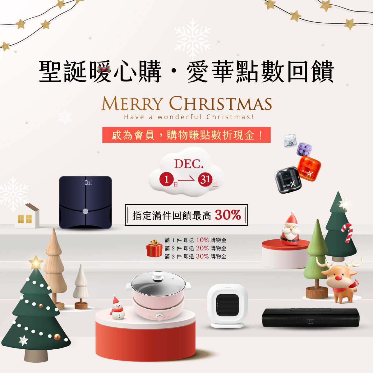 無論是升級家居設備,還是為親朋好友挑選完美禮物,現在是最好的時機。趕快加入會員,享受專屬優惠,讓您的聖誕節與新年充滿驚喜!