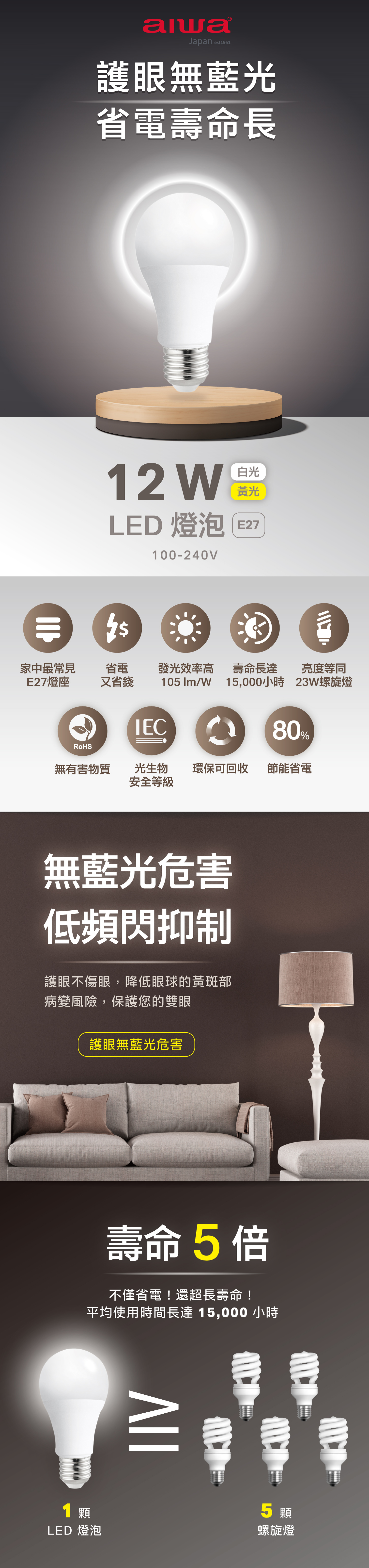 .發光效率高 105 lm/W