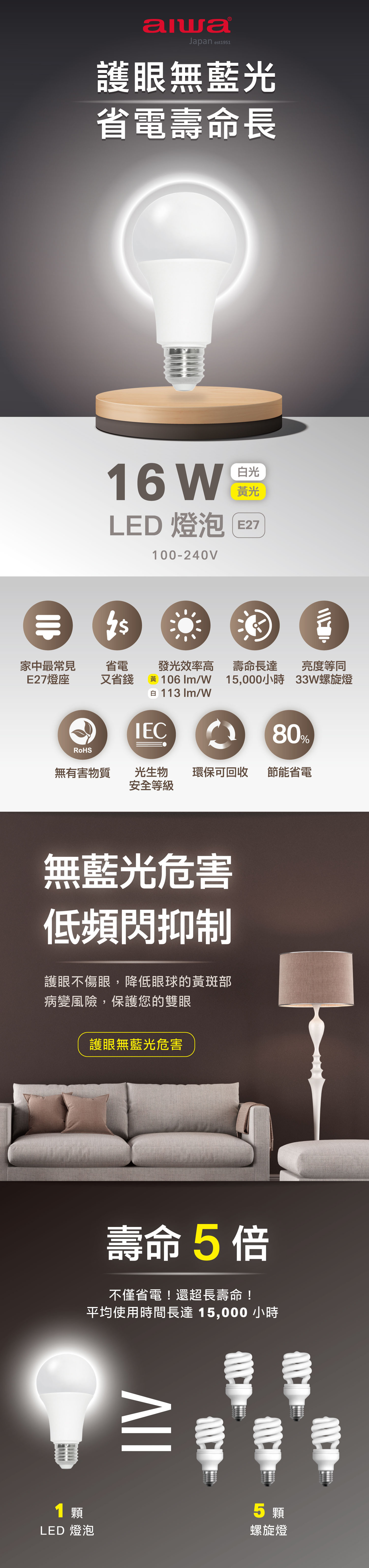 .發光效率高:黃光 106 lm/W ,白光 113 lm/W