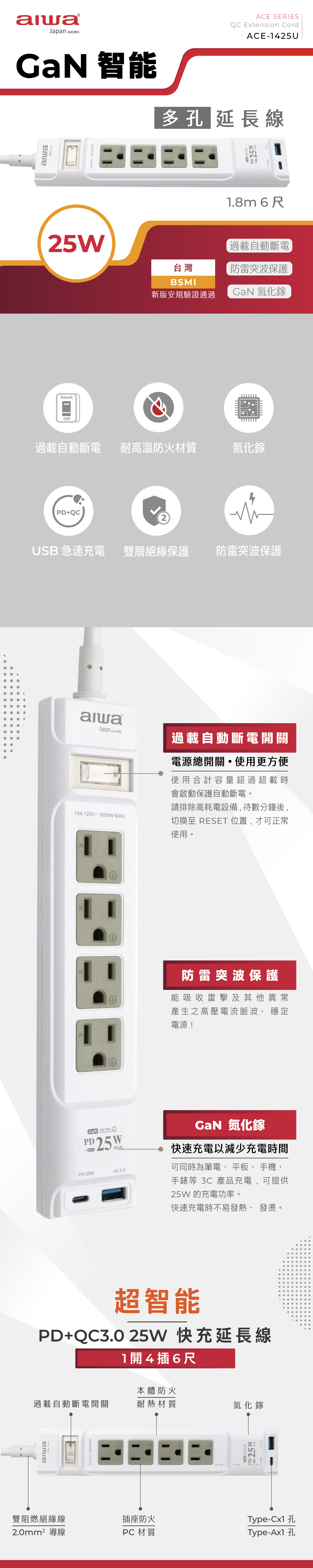 .內建 SmartIC 自動偵測每孔裝置所需電流,提供最穩定的充電品質