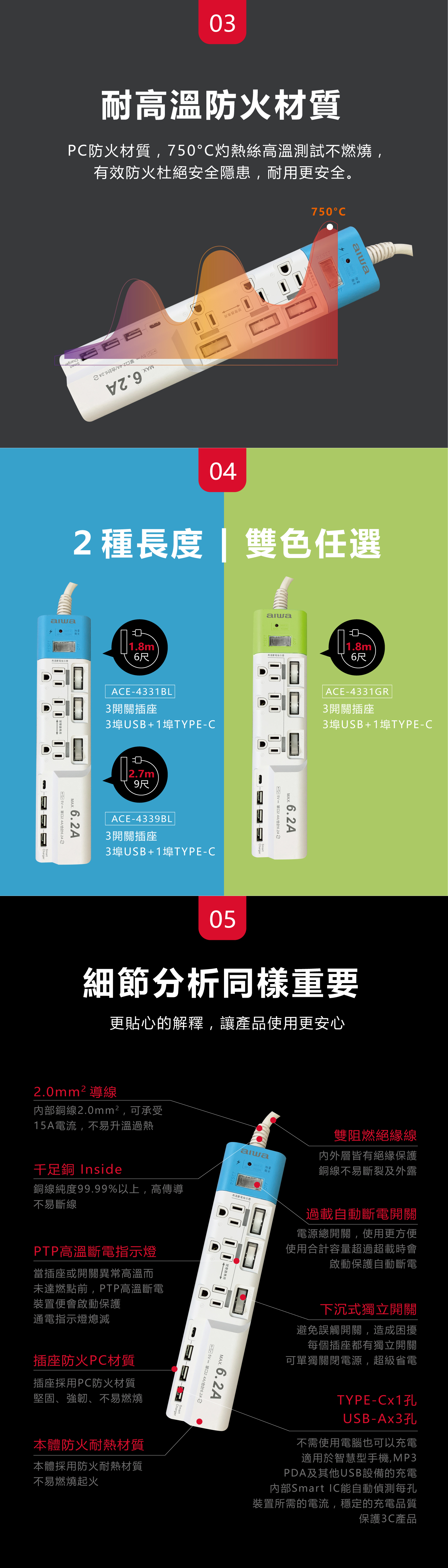 .3個3孔插座+3USB接口,1Type C接口,額定電流6.2A ,適用於手機iPhone,ipod,MP3,PDA及其他SB設備